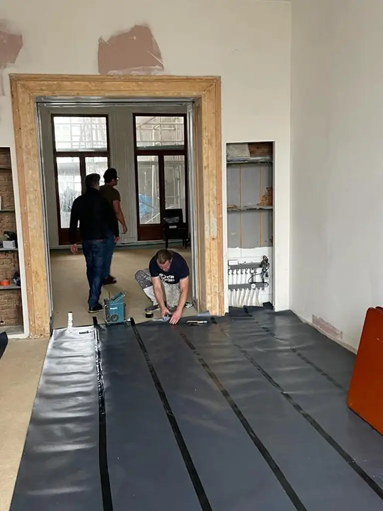 De eerste etage van een karakteristiek pand, nog ongerestaureerd en rauw, vormde een industriële setting het decor voor een bijzonder privé diner. Te midden van onafgewerkte muren en originele details stond één lange, feestelijk gedekte tafel te stralen. Hier kwamen veertig vrienden samen voor een warme en persoonlijke jaarwisseling.